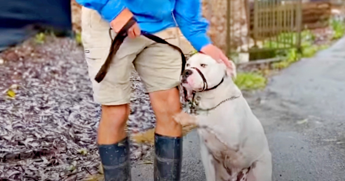 Distraught Pit Bull Put All His Faith Into Woman That Opened His Kennel Door