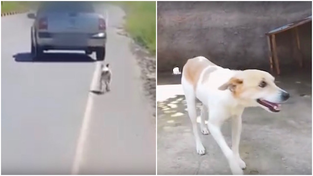 Abandoned Dog Tied With A Bungee Cord Gets Rescued By Four Young Boys