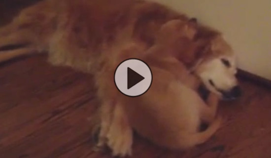 Ariel Goodman, who posted this video on YouTube a few months ago, tells us, “One night I caught my new puppy comforting my older dog who was having a bad dream. They are quickly becoming great friends!” What an adorable treat you’re in for watching these two! We agree, they are destined to become besties! 🙂 Tell us in the comments: what does your dog do when he/she dreams?