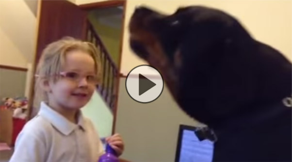 Dan Ceta, who posted this video on YouTube on June 16th, tells us, “This is my daughter singing with my rottweiler. A lovely video showing how Rottweilers are NOT dangerous.” We love his heart to show that there are no bad breeds, only bad owners! My favorite part is at 0:20 when she stops singing for moment. What do you think? Does Coco want her to stop, or keep going? LOL!