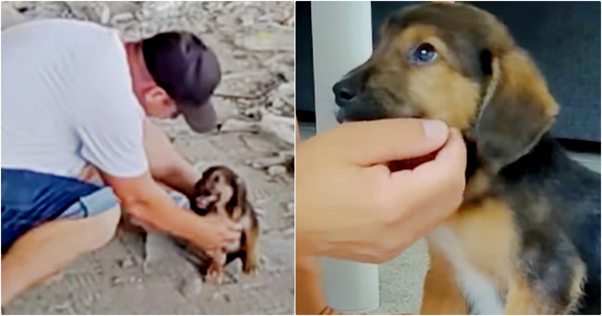 Puppy Adoringly Praises Guy For His Gallantry After Arduous Rescue