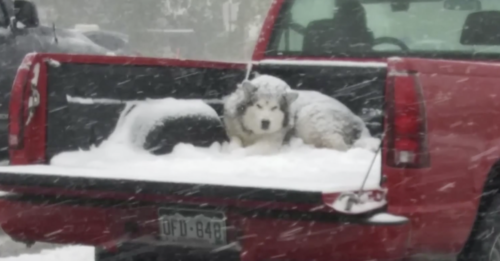 A recent photo went viral of a poor Malamute riding in the back of a pickup truck. The truck tailgate was open, and the dog was covered in snow. This photo started an outrage among some viewers, stating that this event should be considered animal cruelty – regardless of the breed.