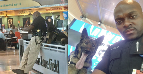 As cute as police dogs are, they’re working dogs. They have an important job to do, and sadly, you’re not supposed to pet them or play with them. However, they’re still dogs. They love their families and they can still have fun. Officer Andre Cloyd helped prove this when he decided to take pictures with his loyal dog partner, Zigi. A woman caught him and his dog taking selfies at the airport, and the photos became viral in no time.