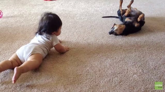 You know, when pets and babies meet, it’s just the same as when two human babies get together. They act kinda shy, curious and friendly towards one another. One reaches out and the other allows him and then they begin to touch each other: on their hands; hair; arm. It’s how we feel for things – our vibe to see if we will be great friends with one another.