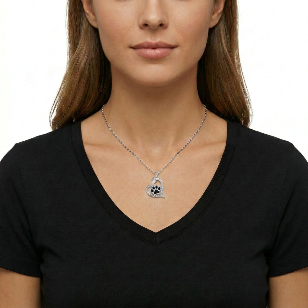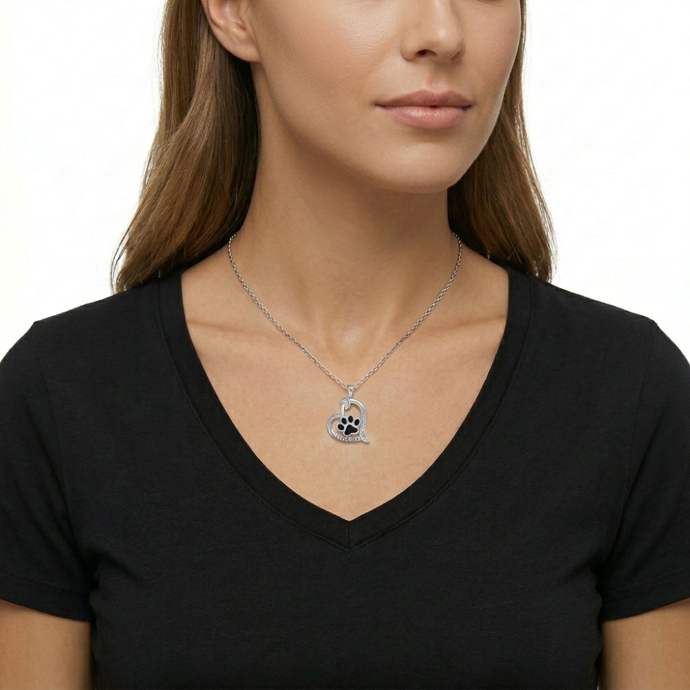 Celebrate the love you share with your furry companion with the Forever Paw Love Heart Necklace. This elegant silver-tone pendant features a heart-shaped design with a black paw print centerpiece and sparkling zircon accents, along with the sweet message “I love you.” It’s a beautiful reminder of the unconditional love and loyalty pets bring into our lives.