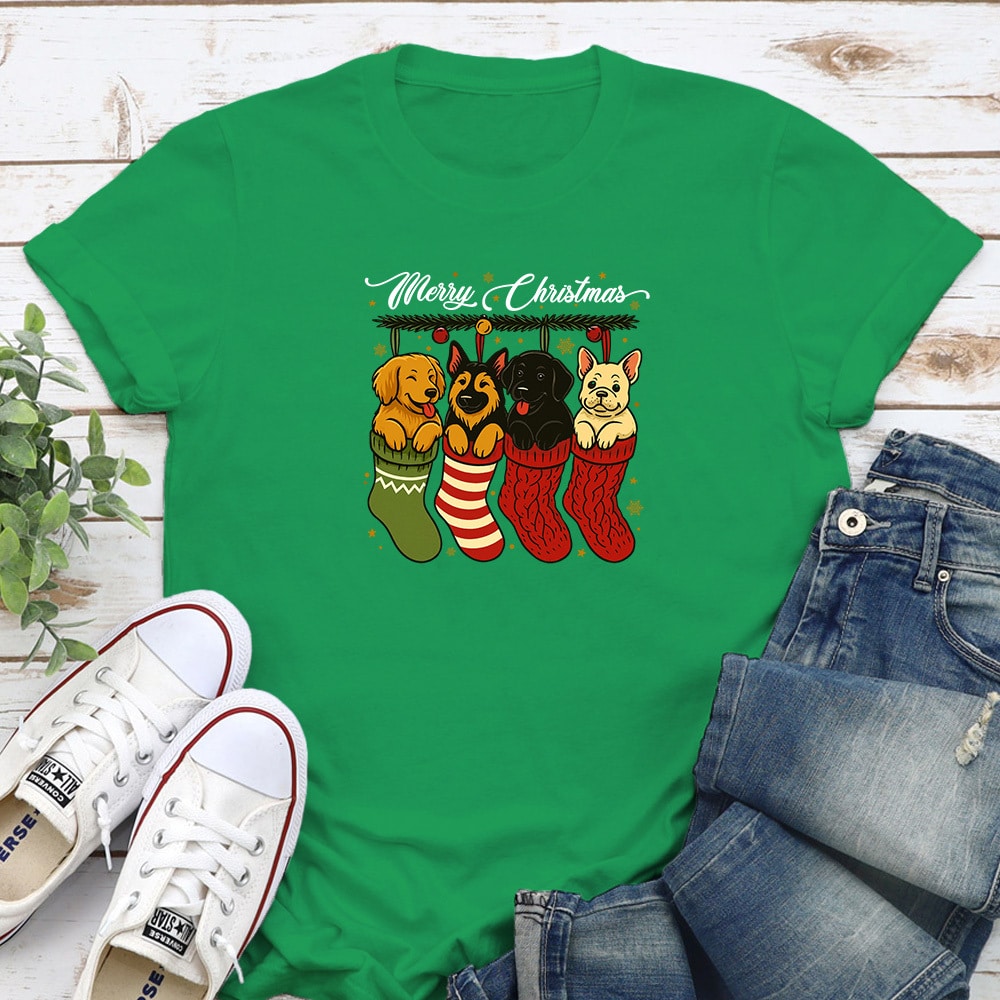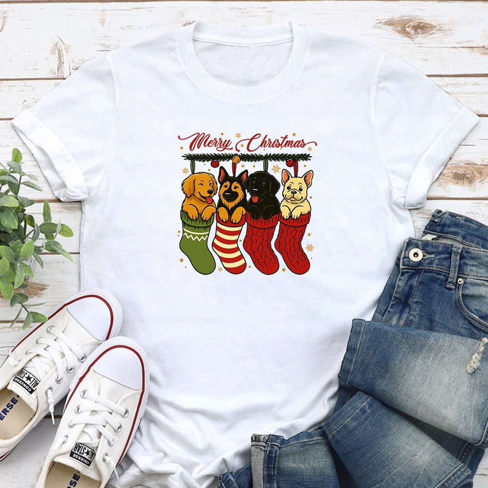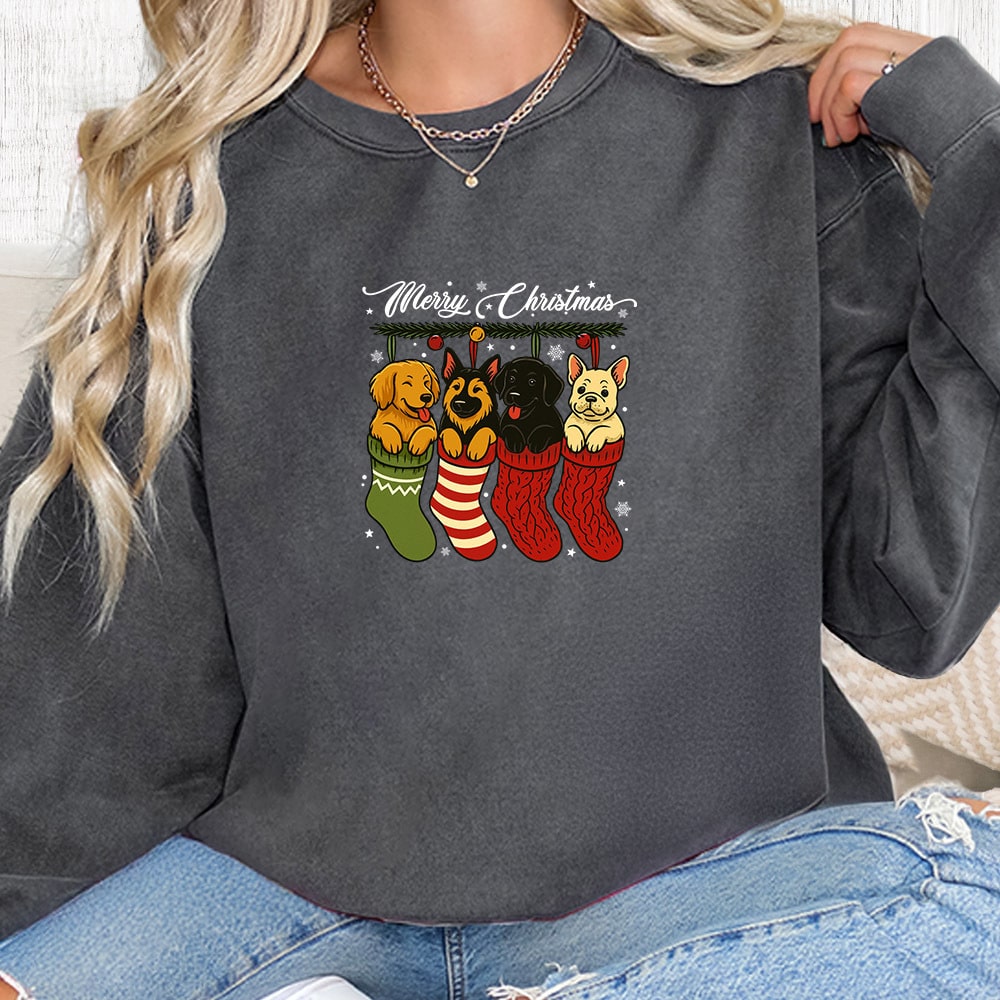 Comfort Colors Merry Christmas Doggie Stockings Vintage Washed Tee – Blue Jean