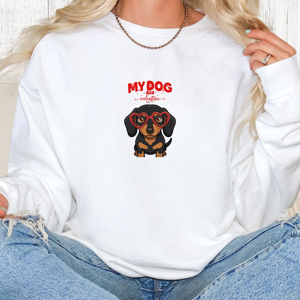 Comfort Colors My Dog Is My Valentine Dachshund Black & Tan Premium Sweatshirt – White