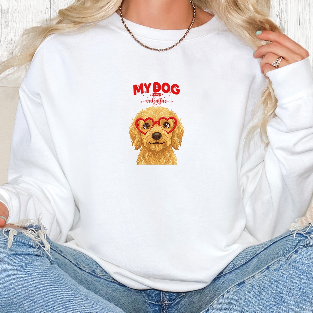 Comfort Colors My Dog Is My Valentine Golden Doodle Tan Premium Sweatshirt – White