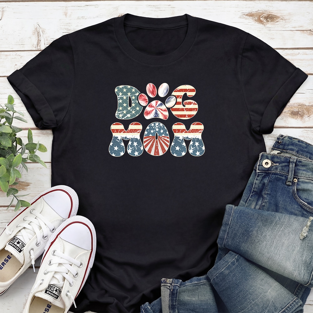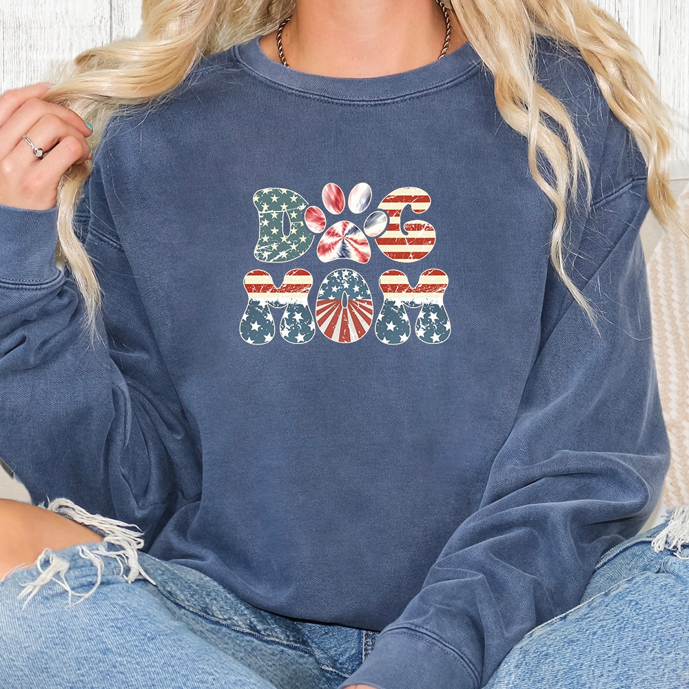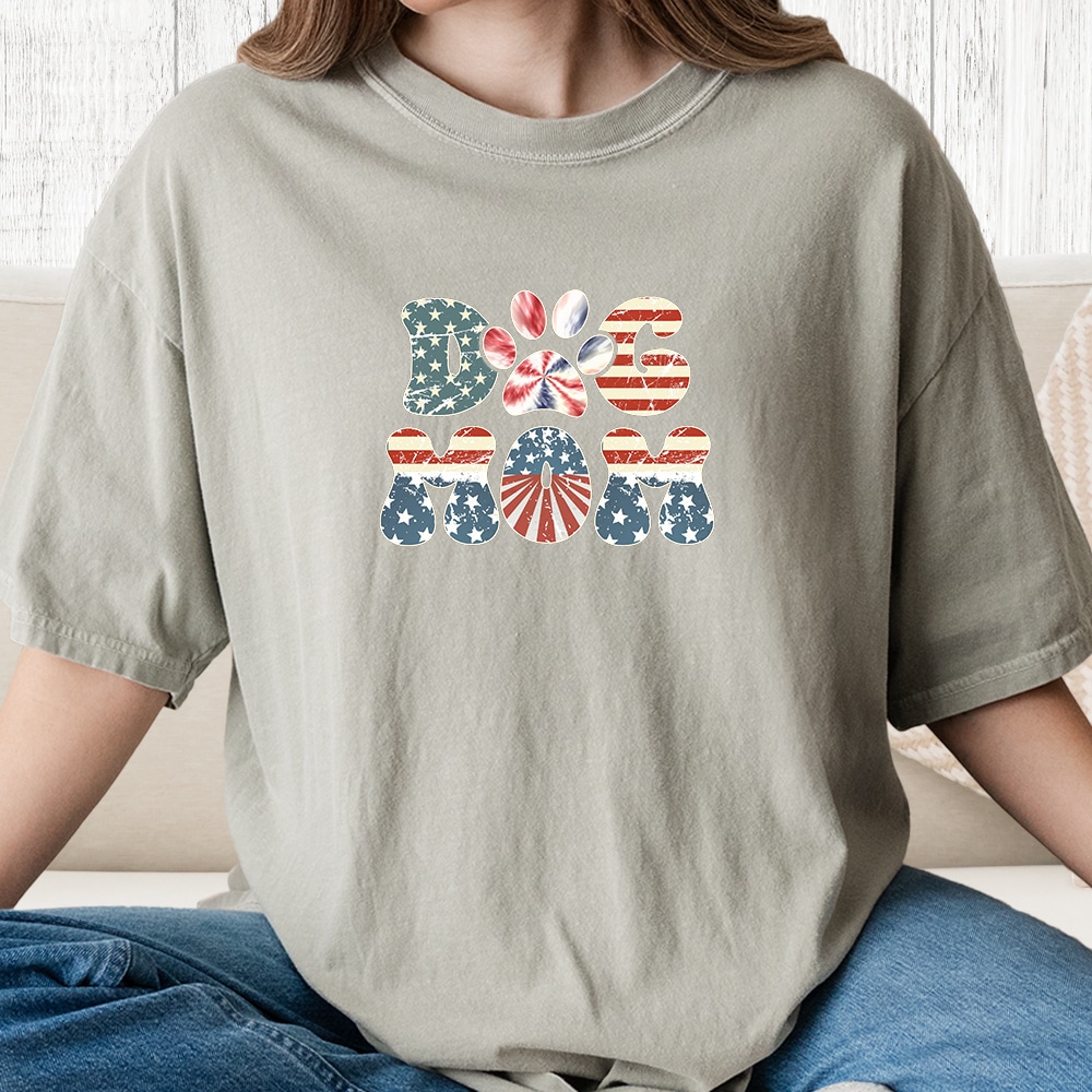 Comfort Colors Retro Patriot Dog Mom Vintage Washed Tee – Sandstone