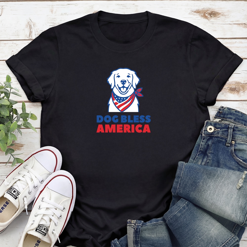 Dog Bless America Dog Lover Standard Tee Black