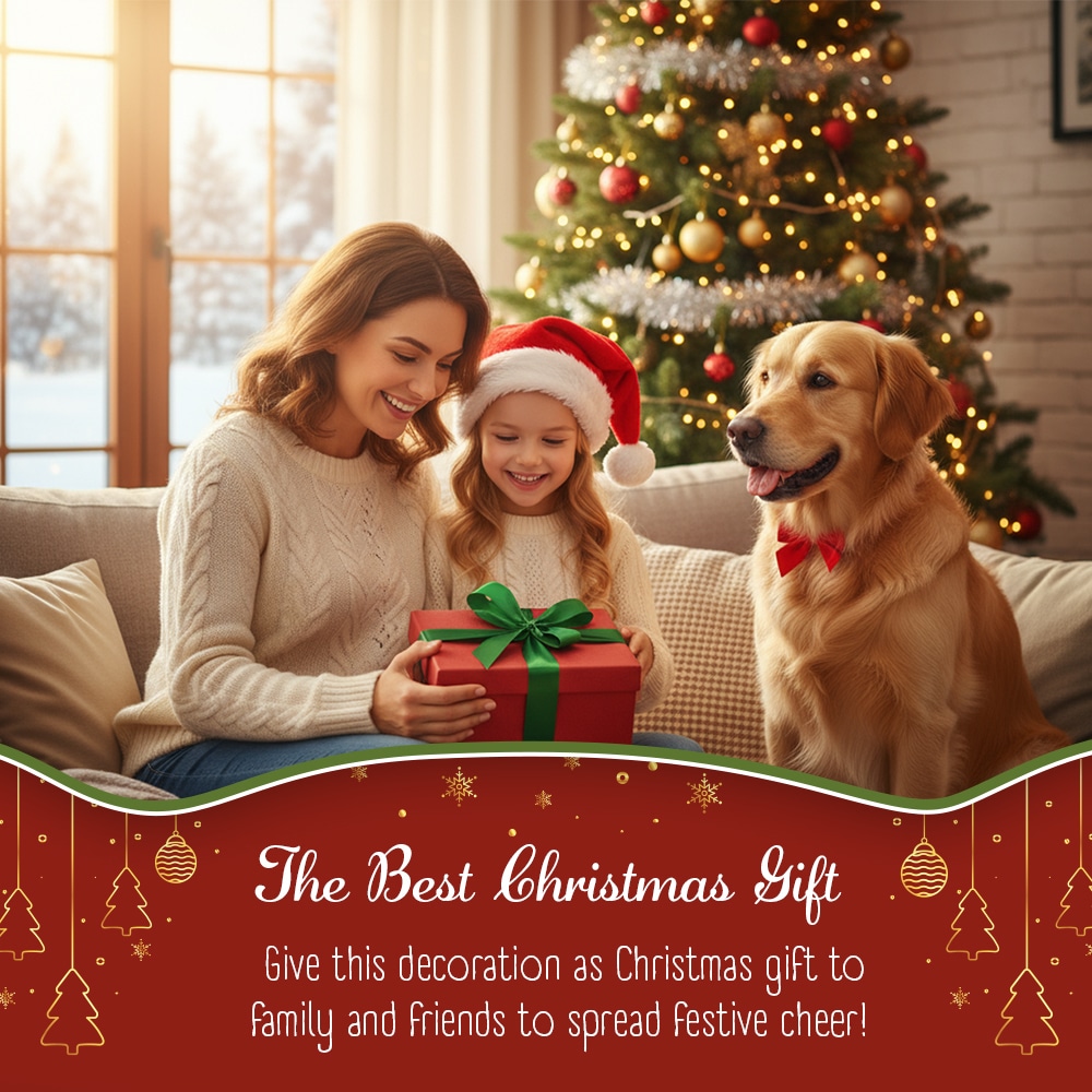 Instant holiday heart: A joyful focal point that celebrates rescue love and the spirit of giving.