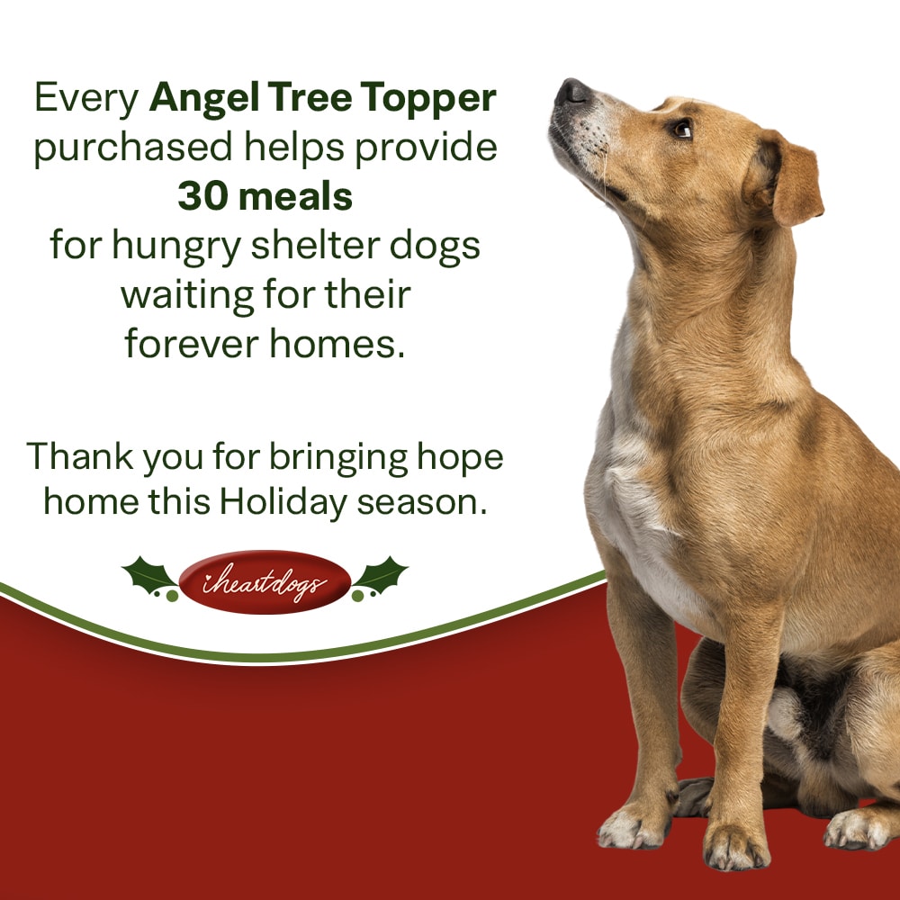 Be an angel to a friend who loves pups! Give your fellow dog lover this beautiful tree topper and help them start a new collection of cute dog Christmas decor. - Gives Back: With every angel tree topper purchased, 30 meals are donated to shelter dogs. Decor that spreads cheer while doing good..