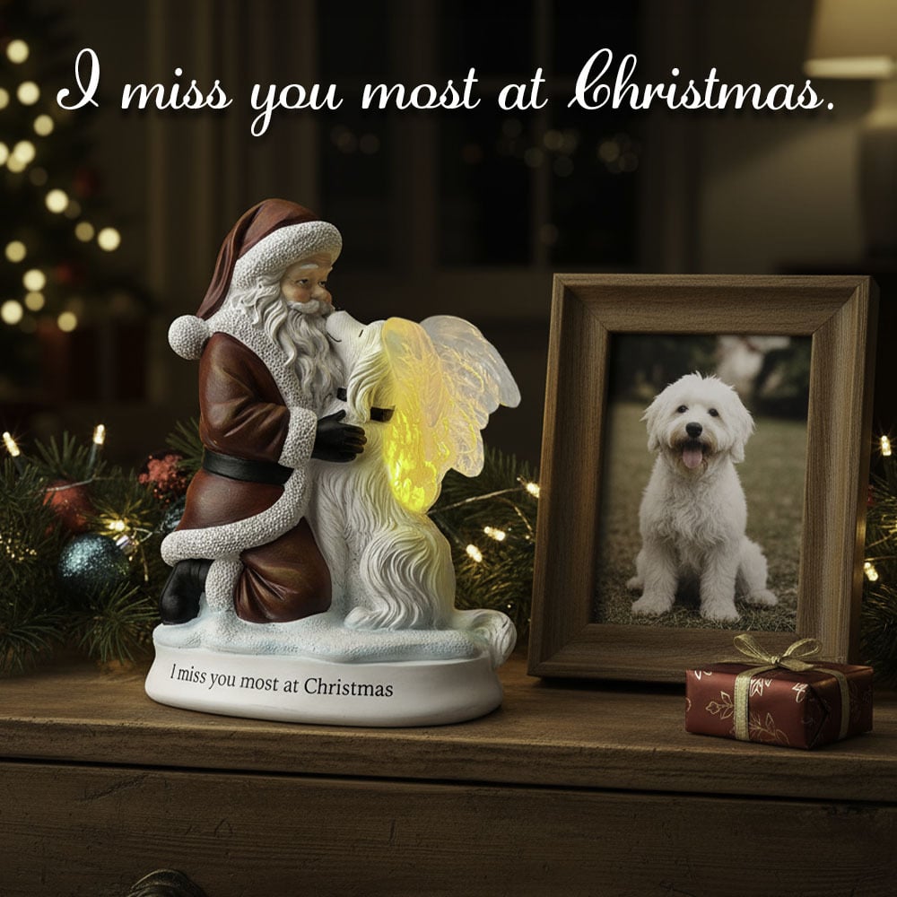 Made With Dog Lovers In Mind – This heartfelt Christmas figurine captures the love between Santa and a loyal angel dog, honoring the pets we miss most during the holidays while sharing the spirit of compassion.