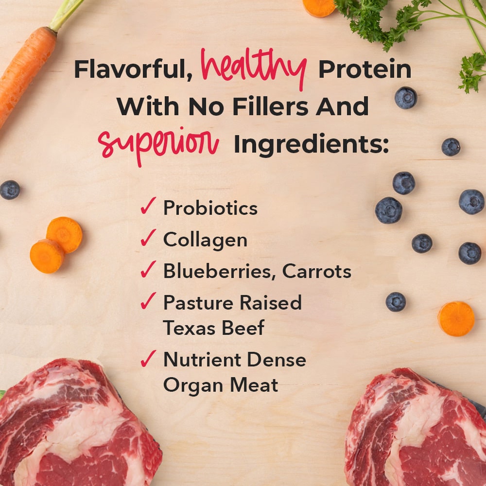 iHeartCats Nutrition Boost Beef Food Topper –Tasty Freeze Dried Beef with Probiotics, Collagen, Salmon Oil, Blueberries & Carrots- 5 oz