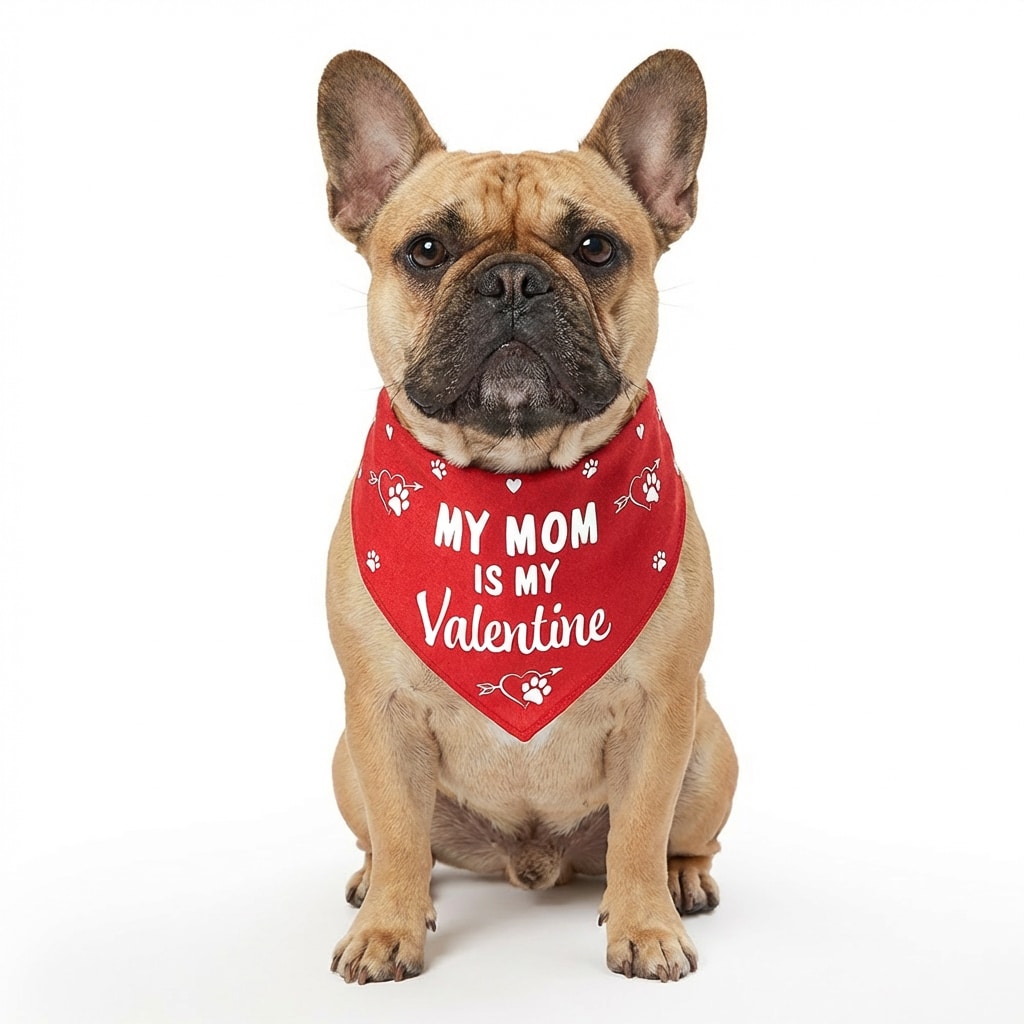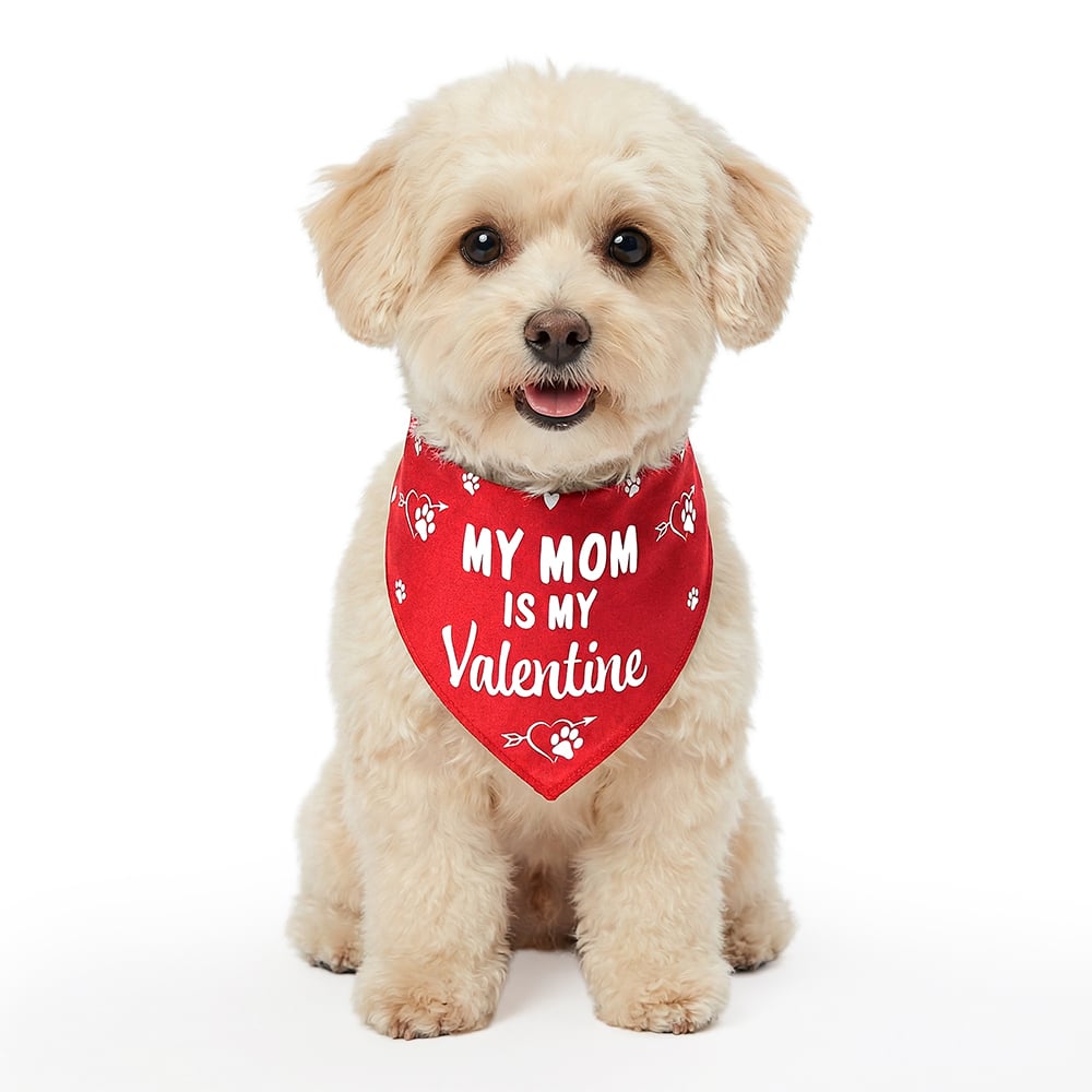 Perfect for Valentine’s Day photos, walks around the neighborhood, or cozy cuddles at home, this adorable red bandana features a charming heart-and-paw print design with the lovable message “My Mom Is My Valentine.” It’s the ultimate accessory for dogs who are proudly obsessed with their favorite person.