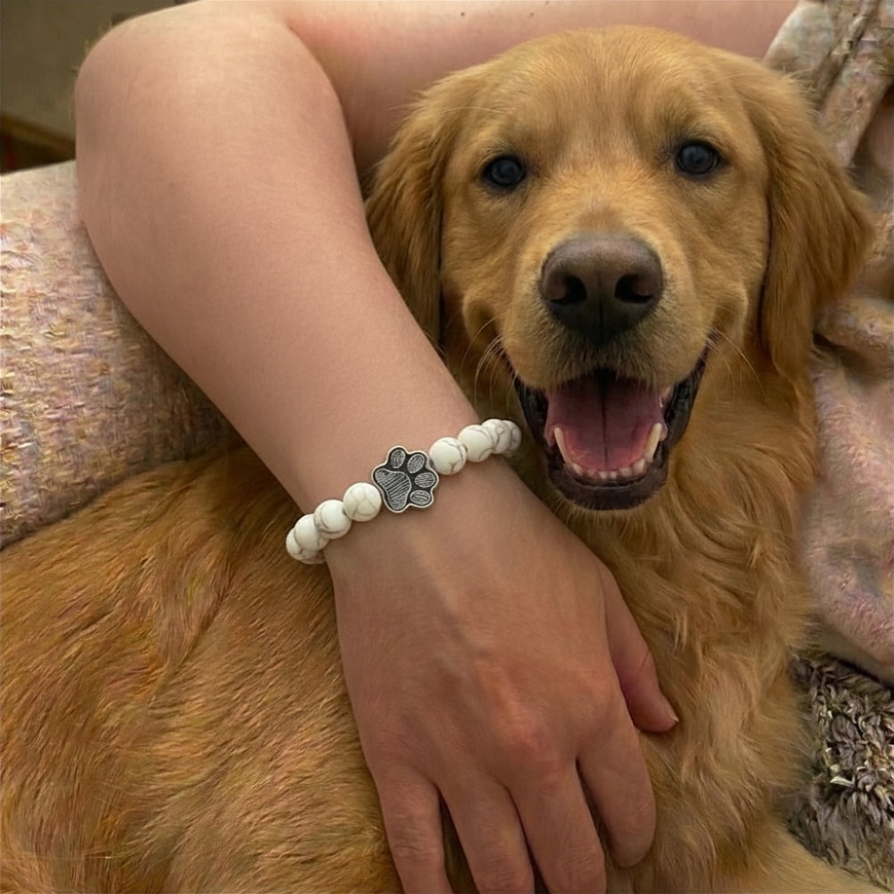 Carry your love for dogs wherever you go with this Paw Print Beaded Bracelet, a simple yet meaningful piece designed for everyday wear. Featuring 8mm natural stone beads strung on a durable elastic cord, this bracelet offers a comfortable stretch fit that’s easy to slip on and wear all day. The paw charm serves as a subtle reminder of the special bond you share with your furry companion.