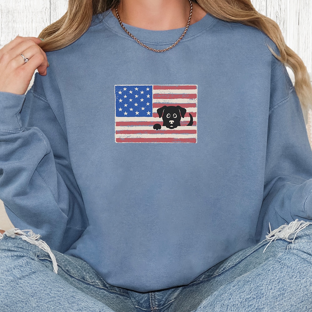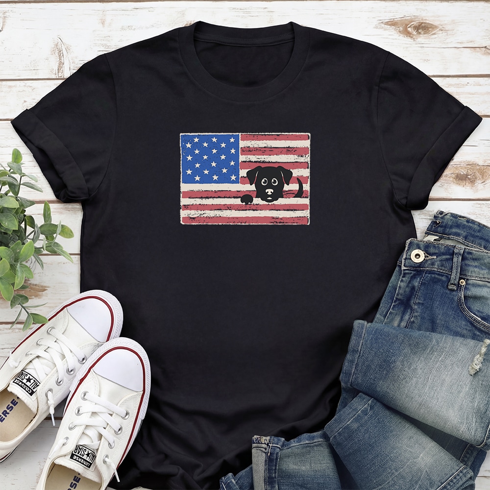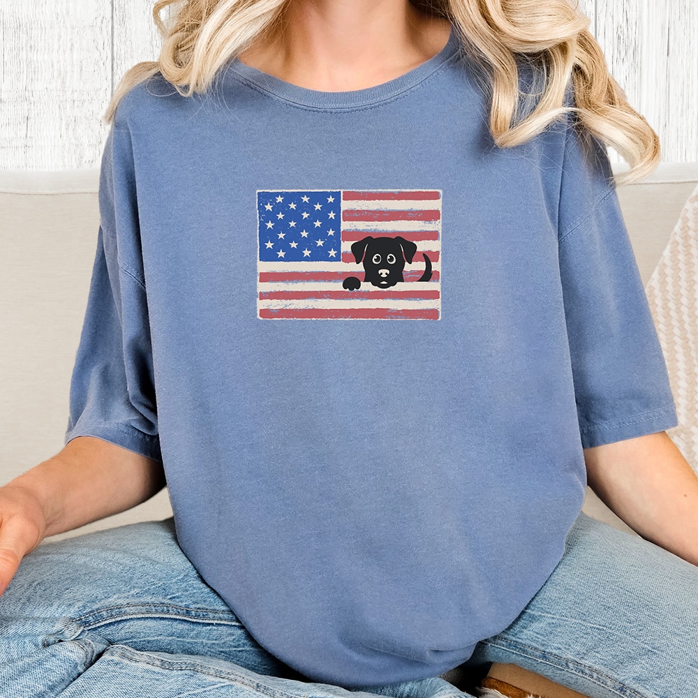 Peek-a-Boo Patriot Dog Standard Tee Navy