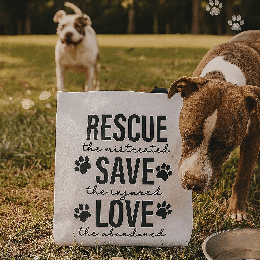 Carry your mission everywhere you go with our “Rescue Save Love” tote bag. Designed for animal advocates, foster parents, and rescue supporters, this bag is more than just a practical accessory—it’s a message of compassion. Featuring the inspiring words “Rescue the mistreated, Save the injured, Love the abandoned,” it serves as a reminder of why we do what we do.