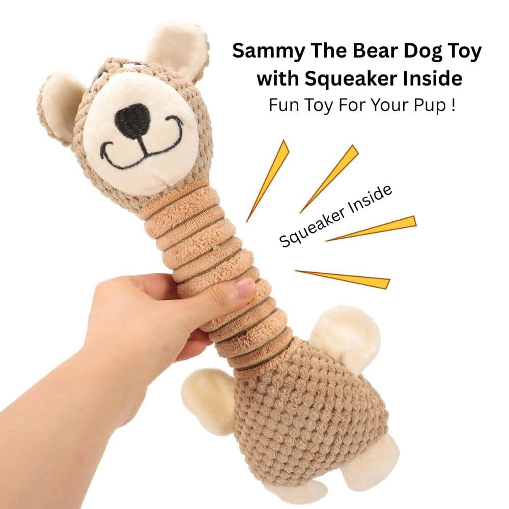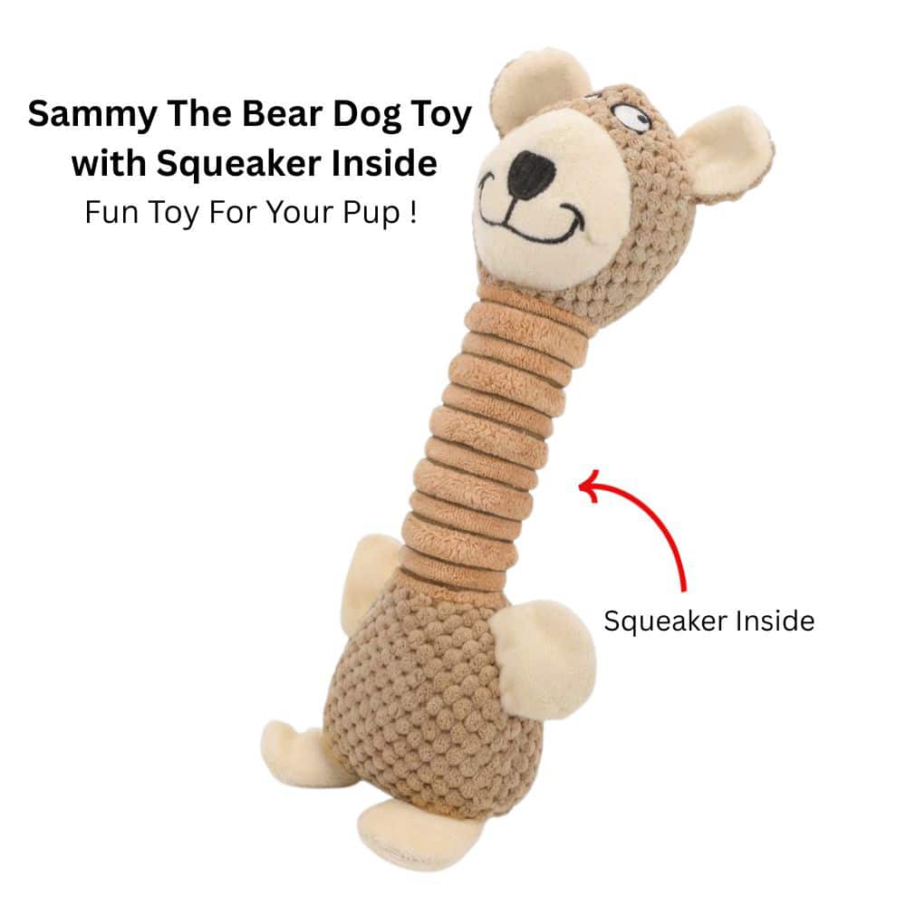Sammy the Bear with Squeaker is a paw-dorable toy your pup will love! 🐻