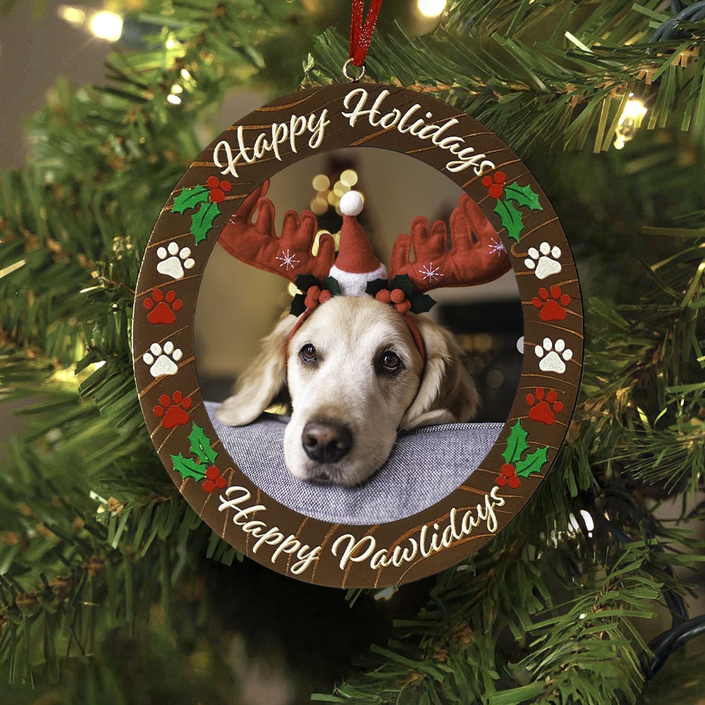 No Christmas tree is complete without a picture of your pup, so put the finishing touches on your decor with an ornament that becomes a personalized keepsake once you add your favorite photo. Painted with holly leaves, pawprints, and the sentiment “Happy Pawlidays,” you’ll enjoy this cute ornament season after season.