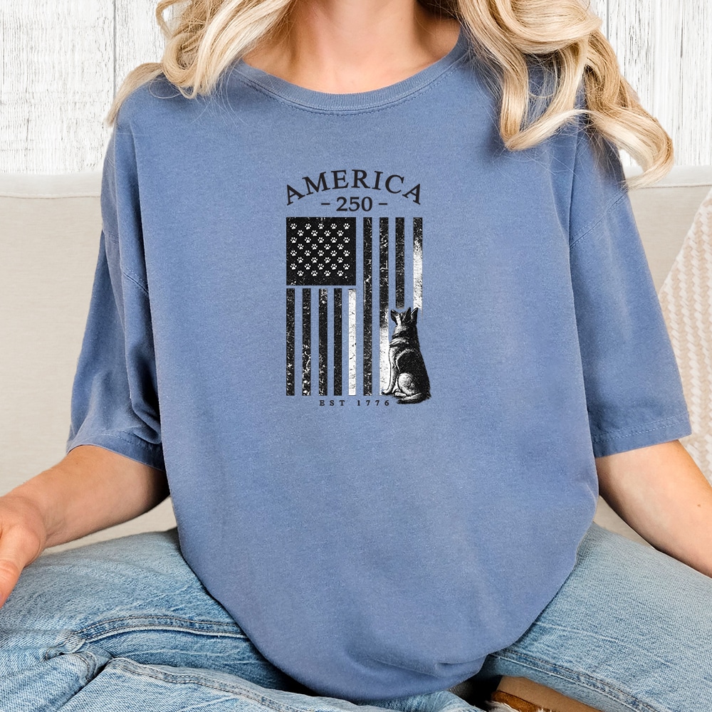 Stars, Stripes & Paw Prints Standard Tee Heather Grey