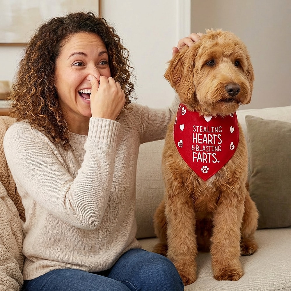 Make your pup the life of the love-fest with this hilarious and adorable “Stealing Hearts & Blasting Farts” Dog Bandana! ❤️💨
