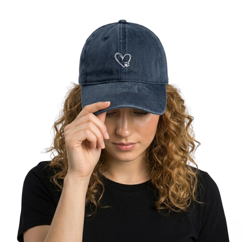 Show off your love for dogs everywhere you go with the Paw Print Heart Dog Lover Hat. Featuring a clean, minimalist heart with paw print design, this classic dad hat is made from soft, breathable cotton for lightweight comfort all day long. The adjustable back strap ensures a one-size-fits-most fit for both men and women, making it perfect for dog walks, errands, travel, or relaxed weekends.