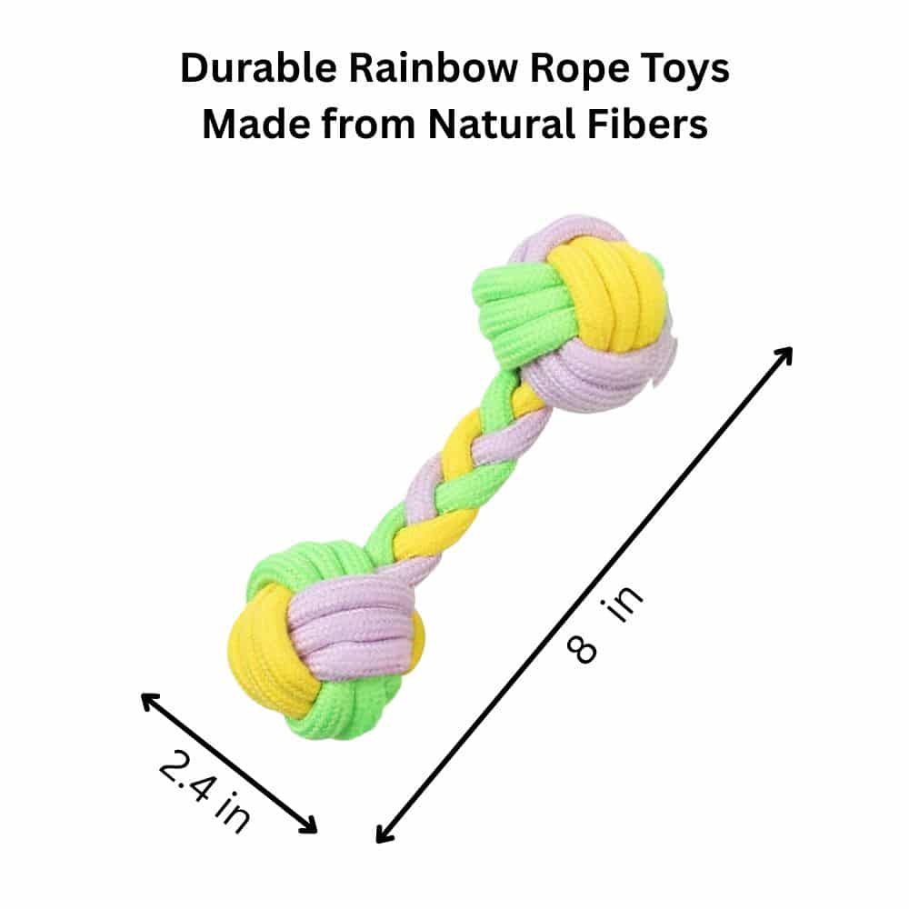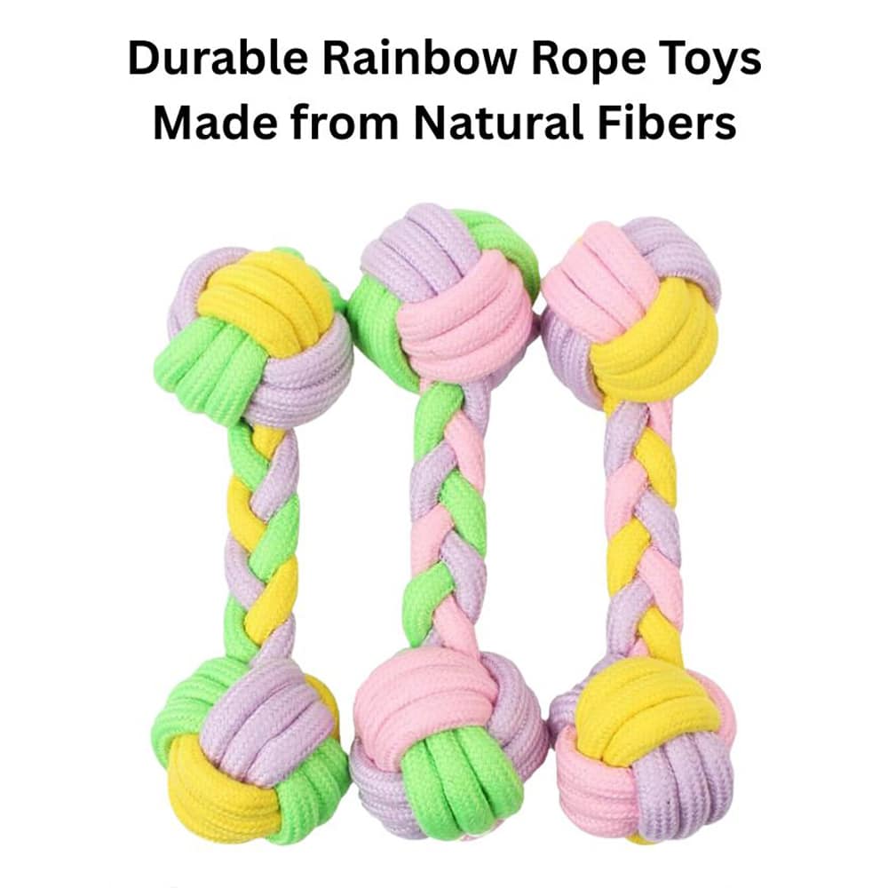 Add color and fun to your dog’s playtime with this Rainbow Pastel Knotted Rope Dog Toys- Set of 3 . Featuring three soft-yet-durable rope toys in cheerful pastel shades, this set is perfect for tugging, chewing, and interactive play. Each toy is designed with knotted ends and twisted rope to give dogs an easy grip and a satisfying chewing experience.