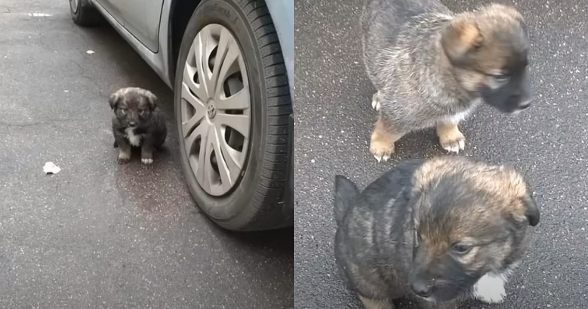 Before this caring woman even noticed the puppies shivering beside a car on the street, they had already endured a great deal of hardship and suffering. These poor pups, along with their entire family, were ruthlessly abandoned by a heartless individual who showed them no compassion.