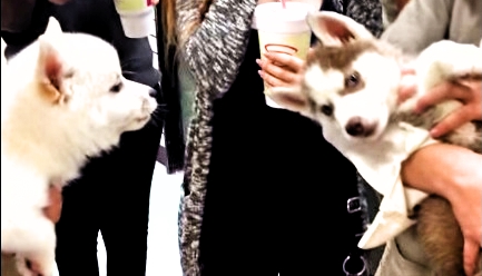 A Shiba Inu puppy met a Siberian Husky puppy, and suddenly he became very chatty. He wanted to bark at the Husky, but he has never tried barking before. Well how hard can it be? You just open your mouth and make loud sound, right? But when he opened his mouth, instead of barking, he ended up squeaking and squawking! The adorable Shiba Inu pup let out a really yappy high-pitched bark and all the ladies around couldn’t help but laugh at how cute he sounds! Watch the video below!