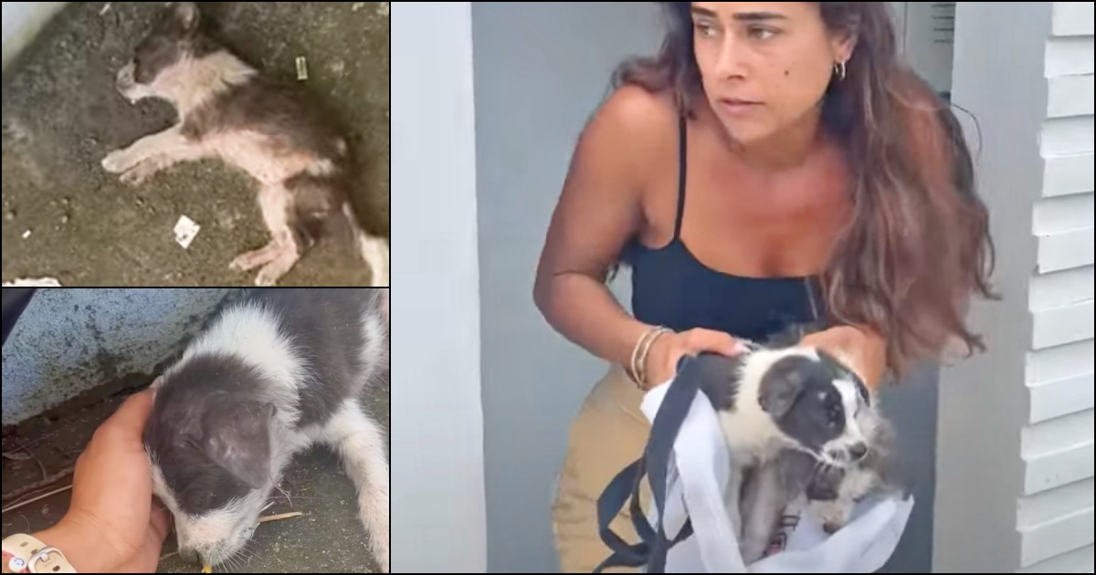 A rescue group was called in when two tiny puppies were found clinging to life. They were so malnourished and dehydrated that they couldn’t move. One volunteer crouched down with water and used her fingertip to wet their lips. Even though they were weak, they still managed to show their appreciation with some tail wags.