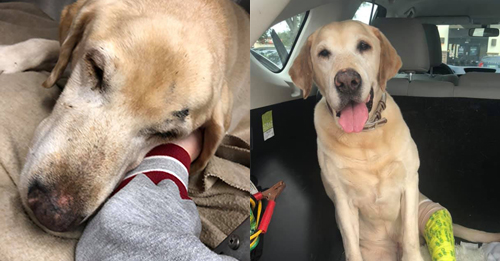 The poor dog, in terrible shape, had now been abandoned by his family and lost his best friend.