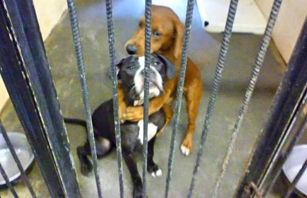 The two dogs, Kala and Keira are shelter puppies in Atlanta, Georgia. Angels Among Us Pet Rescue were told by the shelter that the two were scheduled to be euthanized. They’ve reached their deadline and time was running out for them. The shelter took a photo of the two best buddies, and they captured Kala hugging Keira.
