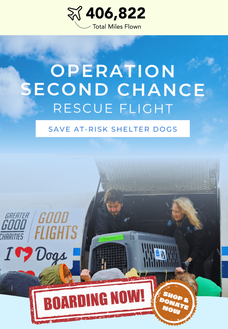Through our partnership with Greater Good Charities, we have a chance to secure these pets the loving homes they urgently need. Your purchase from our Second Chance Movement™ flight collection or direct donation could literally mean the difference between life and a loving home. Be their lifeline today. Help us ensure their story doesn’t end here!