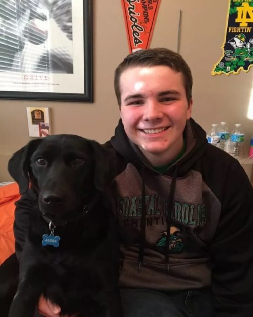 Alpha is only 4-years-old, but the black Labrador Retriever is in high school already. He attends alongside his human companion, junior A.J. Schalk.
