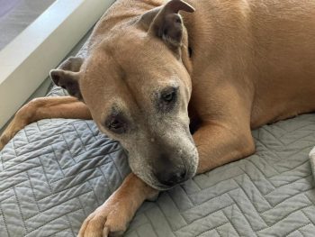 To give her a break from shelter life, a volunteer named Su Morrison took Baby Girl into her home as a foster. The transformation was remarkable. Away from the noise and stress of the kennels, she blossomed into a happy, goofy companion who loved to show her playful side. “Having Baby in our home … it’s a pleasure. The longer she stays, the more we see what an absolute goofball she is. She is such a happy girl,” Morrison said.