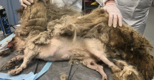The NHS veterinary team ended up removing 9 pounds of matted hair from Ellie Mae. The hair was extremely filthy and smelly, so removing it must have been a tremendous relief for Ellie Mae.