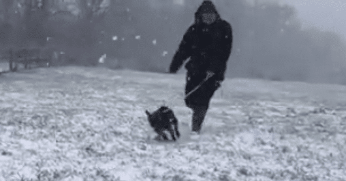Meanwhile, as Scamp settled in, he began to open up more each day. The team at Birmingham Dogs Home shared joyful updates, accompanied by videos of him exploring the shelter grounds. One particularly heartwarming clip showed Scamp playing in the snow, a light dusting covering his paws as he darted around. His once-anxious demeanor began to melt away, and he appeared visibly happier and healthier with each passing day. The shelter shared in a Facebook post, “Scamp is doing really well with our team and has been enjoying playing in the snow. He is slowly coming out of his shell and spending time with our canine carers; he’s certainly preferring our under-floor heating to the bin in Sutton Park.”