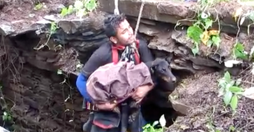 A stray pup named Ruby recently learned the hard way just how dangerous uncovered wells can be. Nobody knows exactly how she ended up at the bottom of the dark, dank hole in Udaipur, a city in India, but her luck changed when someone reached out to animal rescue group Animal Aid Unlimited. Rescuers arrived on the scene and Ruby greeted them with a chorus of welcoming cries.