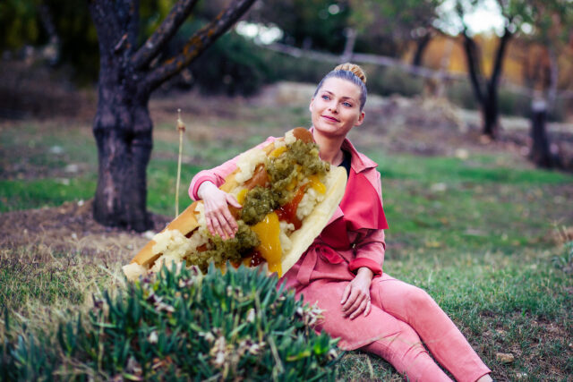 “I’m a Chicago girl at heart,” says Jessica Pfiefer, wiener lover and a pioneer in pet-hot dog ownership. “I’m not actually from Chicago, I’m from Texas. But I love a Chicago dog! Mustard, pickles, onions, peppers. Oscar loves to be dressed up – and he looks good enough to eat! Not that I would.”