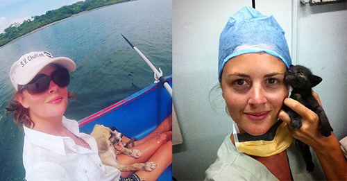 This adventurous vet doesn’t limit her helping hand to just cats and dogs. Her Instagram is dotted with pictures of her helping rabbits, parrots, owls, pelicans, a cow, monkeys, a goat, a sloth, and even an anteater!