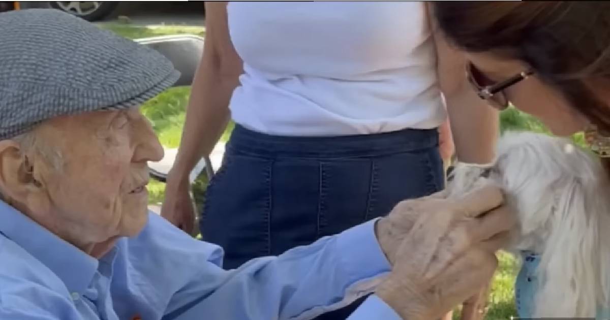 When a dog lover was asked what would make his 100th birthday special, he said he wanted to spend it with some dogs. So his family posted on the Nextdoor app that they would love for some of their neighbors to bring their dogs by their house to celebrate the sweet centenarian.