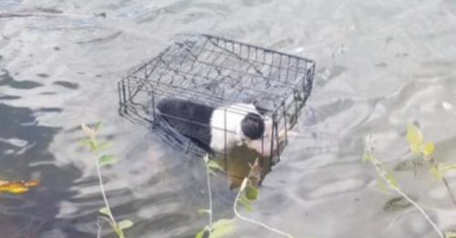 Bryant Fritz is a middle school science teacher at Next Generation School in Champaign, Illinois. He was out fishing over the weekend when he spotted something. As he got closer to the unidentified object, he was dumbstruck. He couldn’t believe his eyes when the full picture came into focus. Sticking out of the surface of Lake Kaufman was a puppy trapped inside a cage, halfway submerged in the frigid water.