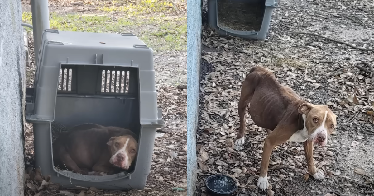 In the serene setting of a Houston park, a moving scene unfolded as Jannel and Robby, two dedicated volunteers with a passion for animal welfare, stumbled upon a distressing sight. Tucked away in a secluded area, they found Prima, a frail dog lying in a decrepit kennel, her form barely visible among the surrounding greenery. Her body was devastatingly thin, her ribs prominently outlined beneath her sparse fur, and her abdomen disturbingly swollen. This heartbreaking discovery instantly compelled them to take action, knowing they had to intervene to save her.