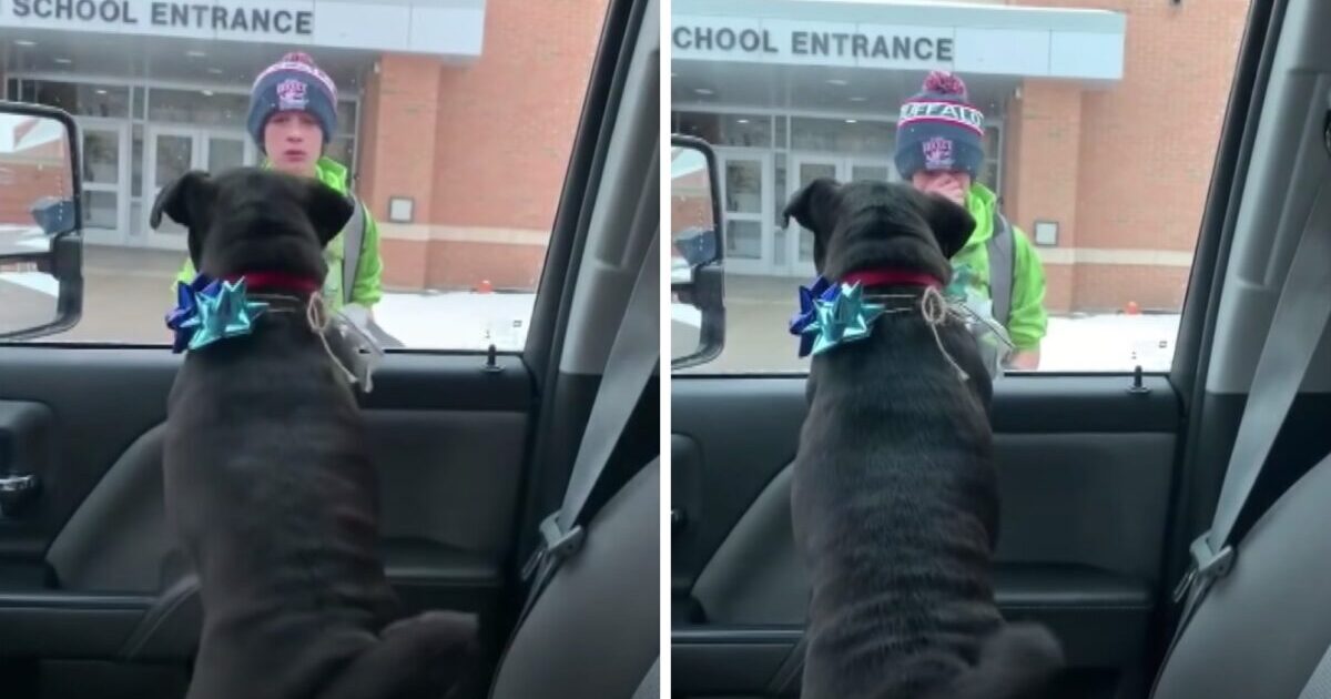 Deciding to surprise her son at school pick-up, April put Piper in the car with her. She then filmed the most glorious and emotional reunion video of her 14-year-old son and his best friend.