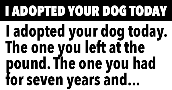 I adopted your dog today.