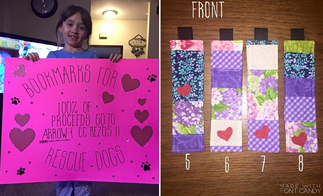A 7-year-old girl is helping dogs in her own way–she makes beautiful handcrafted bookmarks and uses the earnings to help rescue dogs.