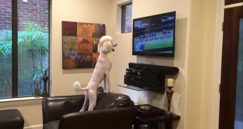 We all know that sometimes dogs will watch television with us. But what about a dog that watches television all by themselves? Well, this Poodle was not about to miss the new Triple Crown winner, American Pharaoh, make history for the first time in several decades. Sherlock the Standard Poodle watches closely, cheering for his favorite Thoroughbred, eagerly awaiting the big win that we all saw coming–jumping up and down in excitement. Check out this dog’s hilarious reaction to the big race that made history at Belmont Stakes this past weekend!