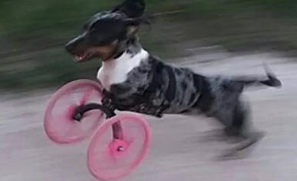 While every dog is born with a gentle and playful spirit, not all are fortunate enough to be born physically the same. Meet Bubbles. She’s a sweet Dapple Dachshund that was born without two front legs. Thankfully her dog parents were able to put together some new pink legs for her–or wheels, and 3D ones at that! With the help of her new wheels Bubbles can cruise around with the other doggies, and you would be truly amazed at just how fast she can go! This dog just proves that she will not let a disability define her, and she’s just as quick (or even quicker!) than any other dog with four legs. Take a look at her go in this awesome video!