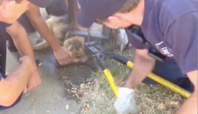“Engine 44 arrived on scene to find this German Shepherd in a tight spot,” reads the video’s caption. This poor pup somehow managed to get his head stuck in the bottom of a fence!
